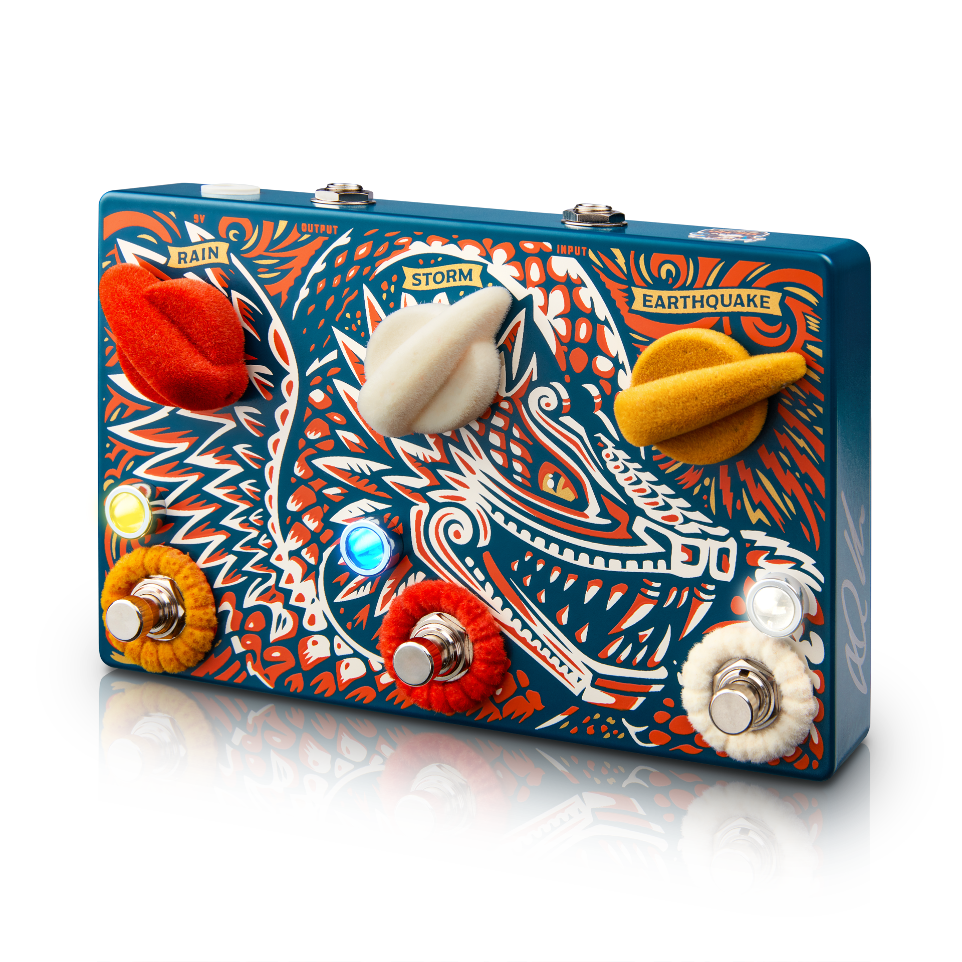 Beware: the KUKULCAN deceives. A hidden harmony in chaos. Like every serpent, it slithers in shadows, disguising truth in plain sight. Footswitches and potentiometer Knobs of the KUKULCAN entwine like serpents,